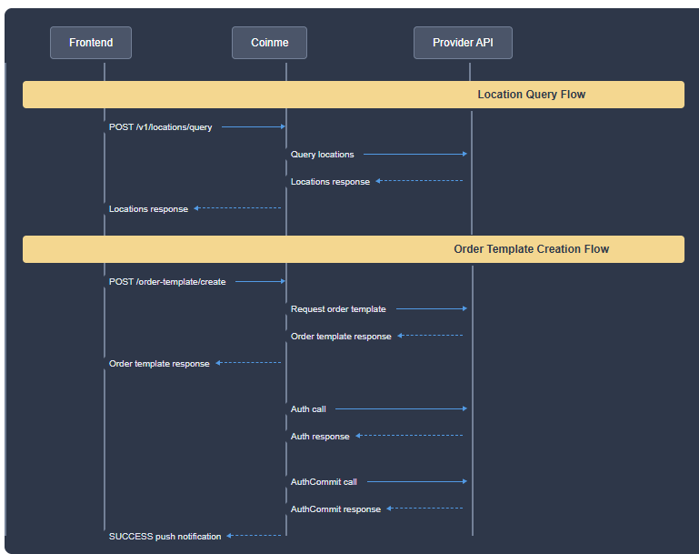 For example, for a cash on-ramp order template, the user gets the order template via a barcode, scans it at the cashier, hands cash over, and the crypto arrives in their wallet.